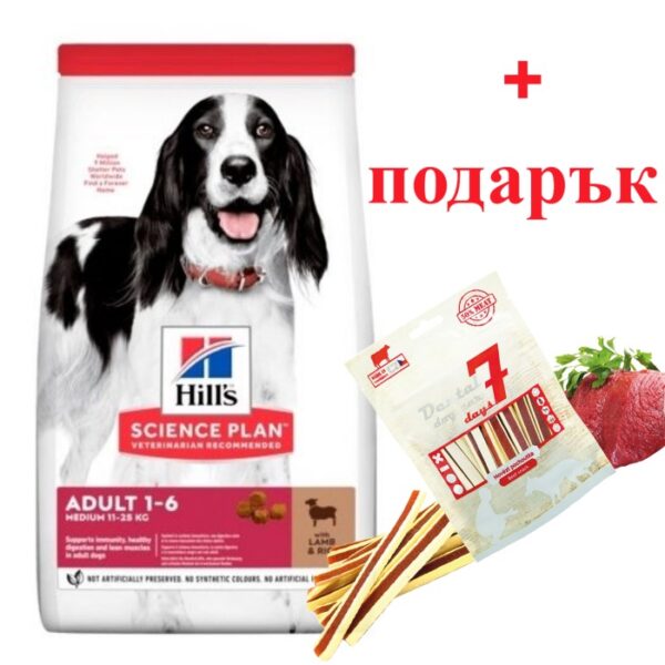 Храната HILL’S SCIENCE PLAN Adult е пълноценна храна за кучета от средните породи (11-25кг) от 1 до 6 години, с агнешко и ориз, специално формулирана да посреща енергийните нужди на кучетата в разцвета на годините им. Приготвена от висококачествени, лесно смилаеми съставки. Без добавени изкуствени консерванти, овкусители и оцветители. (Агне 9%; ориз 6%).
