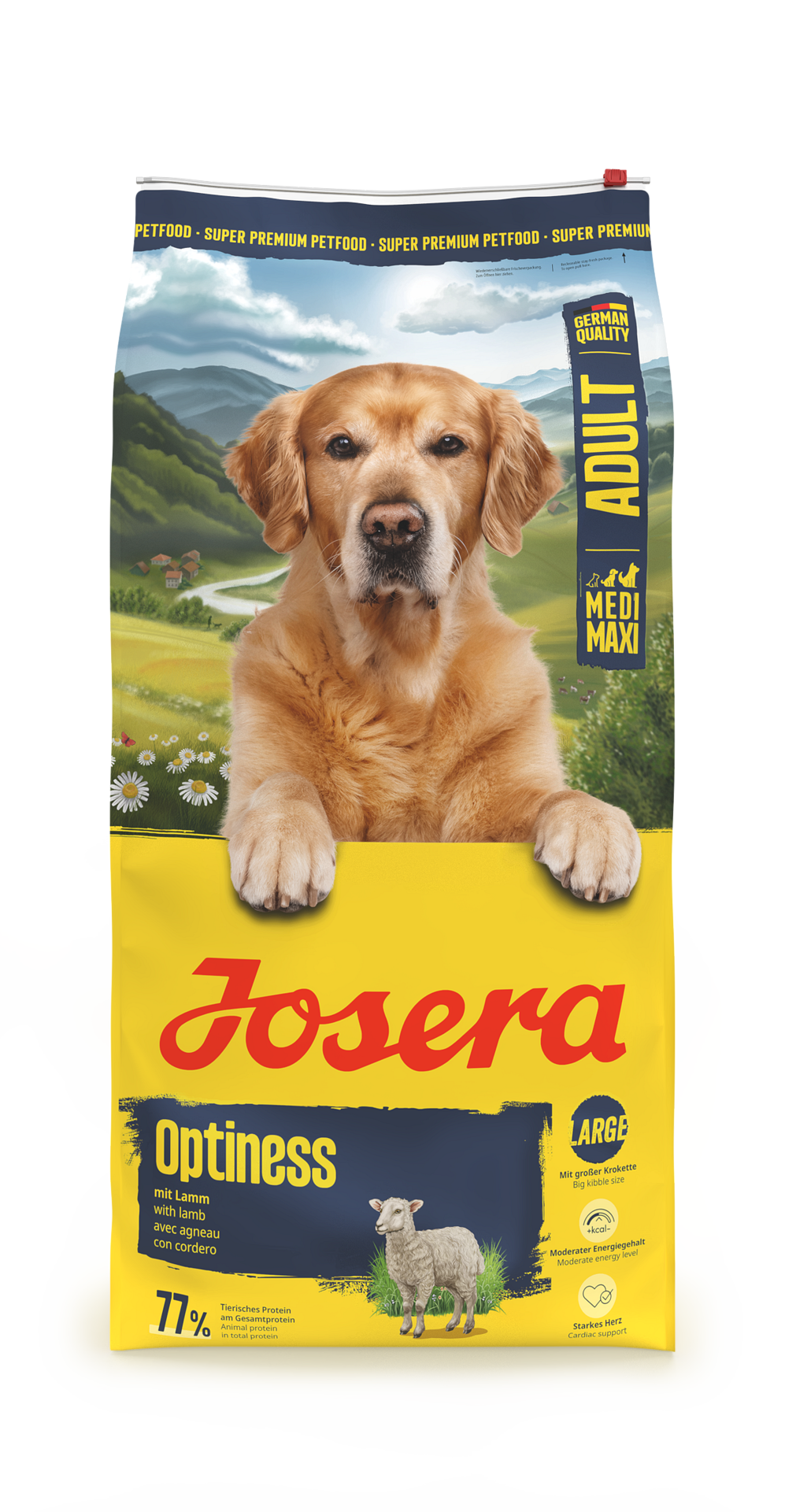 Josera Dog Adult Medi Maxi Optiness Lamb е надежден избор за ежедневно хранене на придирчиви кучета от средни и едри породи, които се нуждаят от пълноценна, добре поносима и балансирана храна.