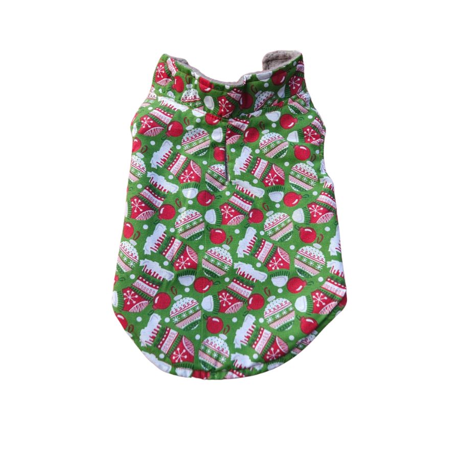 Подарете на Вашето куче уют и празничен стил с тази ръчно изработена коледна дреха. Всеки модел е уникален – наличен само по 1 брой от размер и цвят, което гарантира, че вашият любимец ще изглежда неповторимо. Създадена с висококачествени материи и внимание към детайлите, дрехата осигурява комфорт и свобода на движенията. Перфектен избор за празнични фотосесии, разходки или като специален подарък за четириногия член на семейството. Побързайте – налична е само по една бройка!