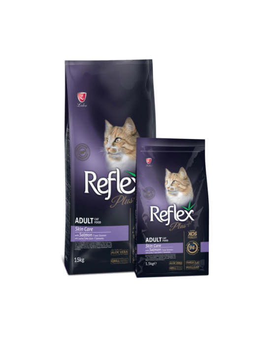 Reflex Plus Cat Skin Care Salmon е супер премиум суха храна за израснали котки от всички породи, създадена с фокус върху здравето на кожата, козината и храносмилателната система.