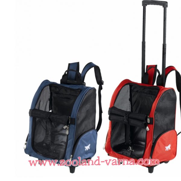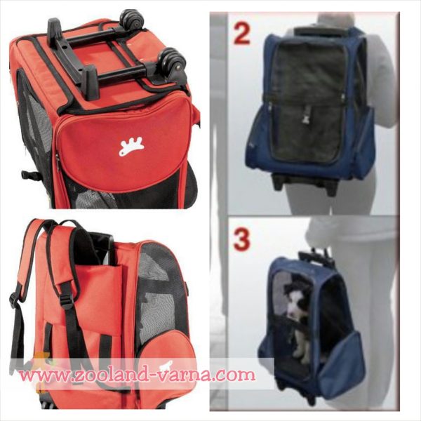 Искате да се качите с кучето си в градския транспорт или в междуселищен автобус? Няма проблеми! Нужна ви е само една транспортна чанта Trolley. Тя е не само чанта, има и удобни колелца, както и удължаваща се дръжка с помощта на която я дърпате. Може да я носите и като раница - на гърба, ако така ще ви е по-удобно. Тя разбира се е не просто чанта, а чанта за вашия домашен любимец - приспособена е така, че той да се чувства комфортно. От предната страна има мрежичка, която позволява на кучето да вижда какво се случва и да диша свободно. С помощта на ципове може да разтворите мрежичката и да я навиете нагоре.