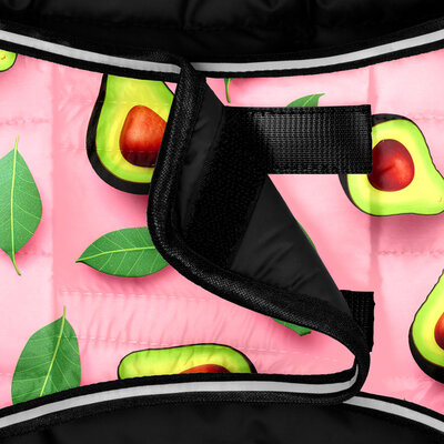 Дизайнът Avocado on Pink е част от новата колекция с игриви и плодови мотиви, създадени да подчертаят характера на всяко куче и да внесат позитивно настроение дори в най-мрачното време.